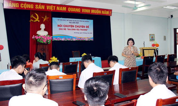 Sáng ngày 18/6/2025, Thư viện tỉnh Hải Dương tổ chức buổi nói chuyện chuyên đề với chủ đề “Gia đình yêu thương" nhằm nâng cao nhận thức về vai trò của gia đình Việt Nam trong kỷ nguyên vươn mình của dân tộc, vai trò của các con trong gắn kết gia đình và tổ chức trưng bày giới thiệu sách tại góc đọc sách cùng con “Gia đình đọc sách – gắn kết yêu thương".